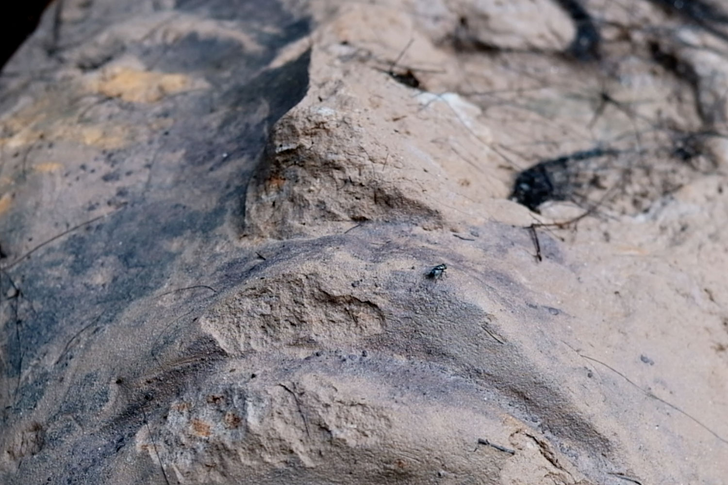 raw clay, palm fibre and found pigment on rock
