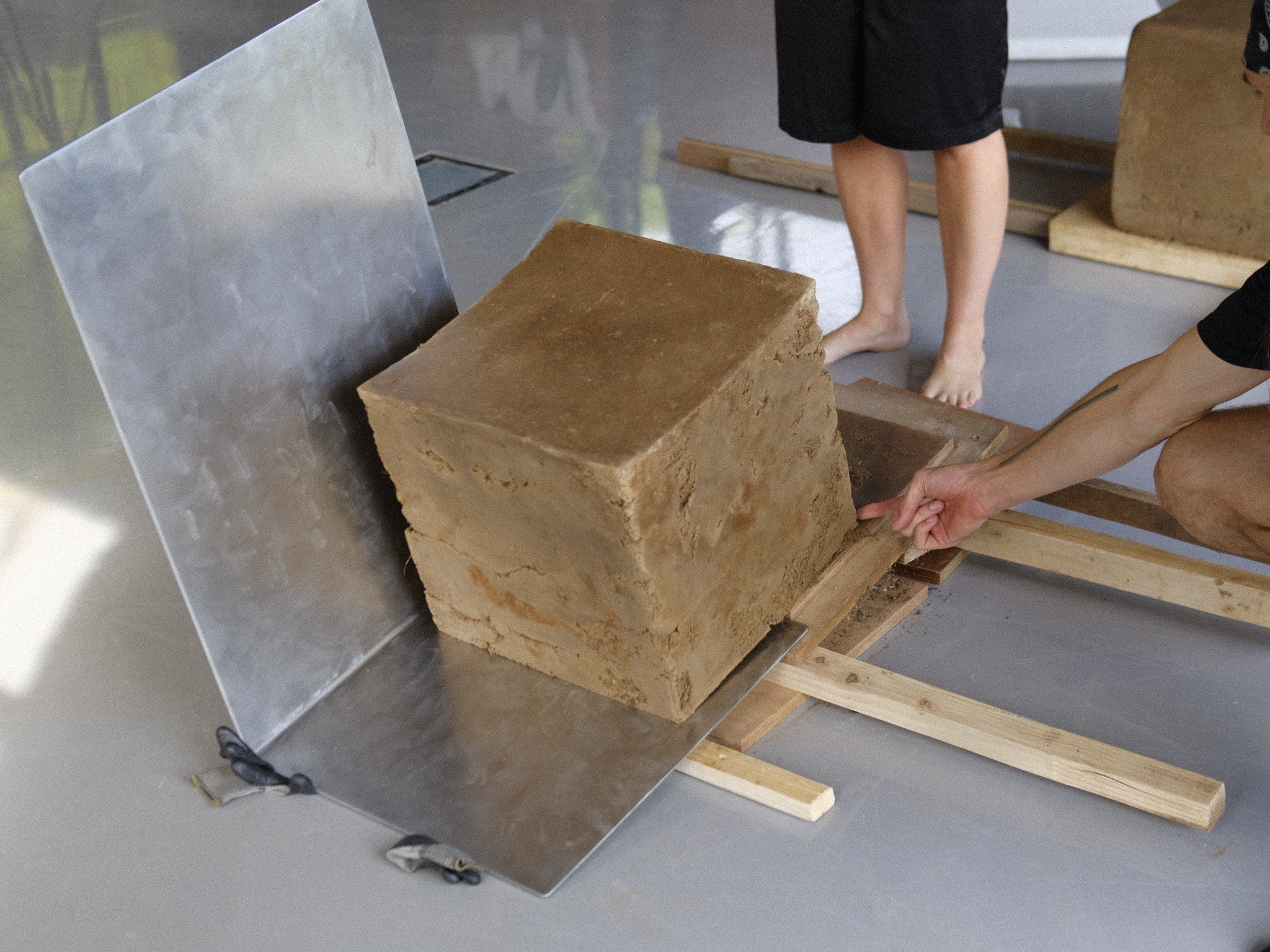 The idea spawned from an urge to exhibit clay-earth in its purest form, as a box-section extracted from the ground and framed in its rawest state on a single sheet of steel.